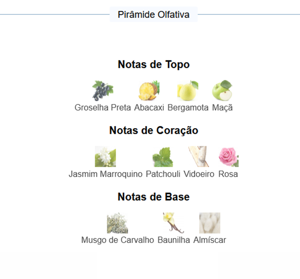 Notas de fondo: pachulí, sándalo, vainilla, ámbar