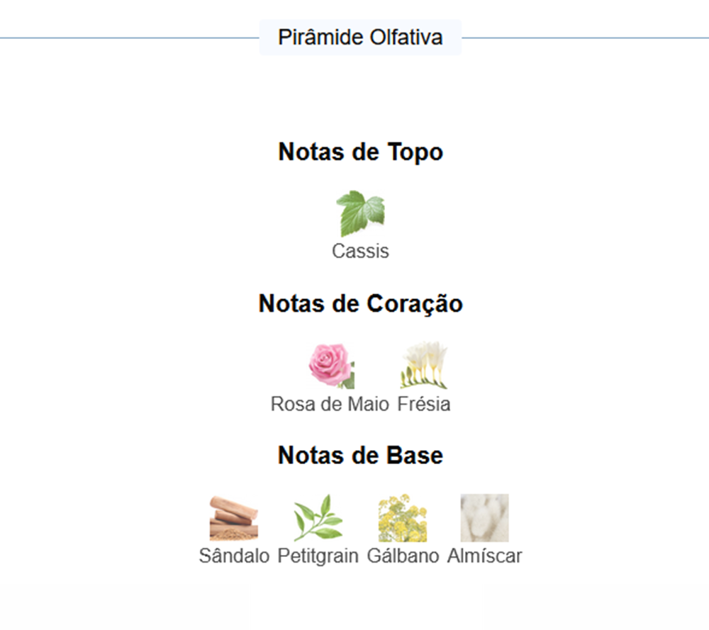 Notas de fondo: vainilla, pachulí, notas amaderadas, ambroxan