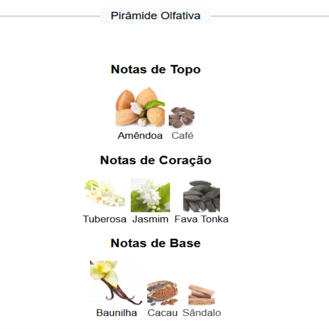 Base: Cacao, Vainilla, Sándalo