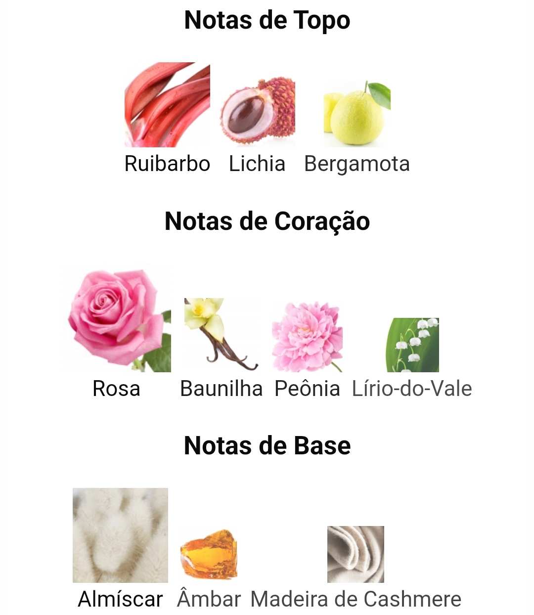 Notas de corazón: rosa, peonía, vainilla, lirio de los valles