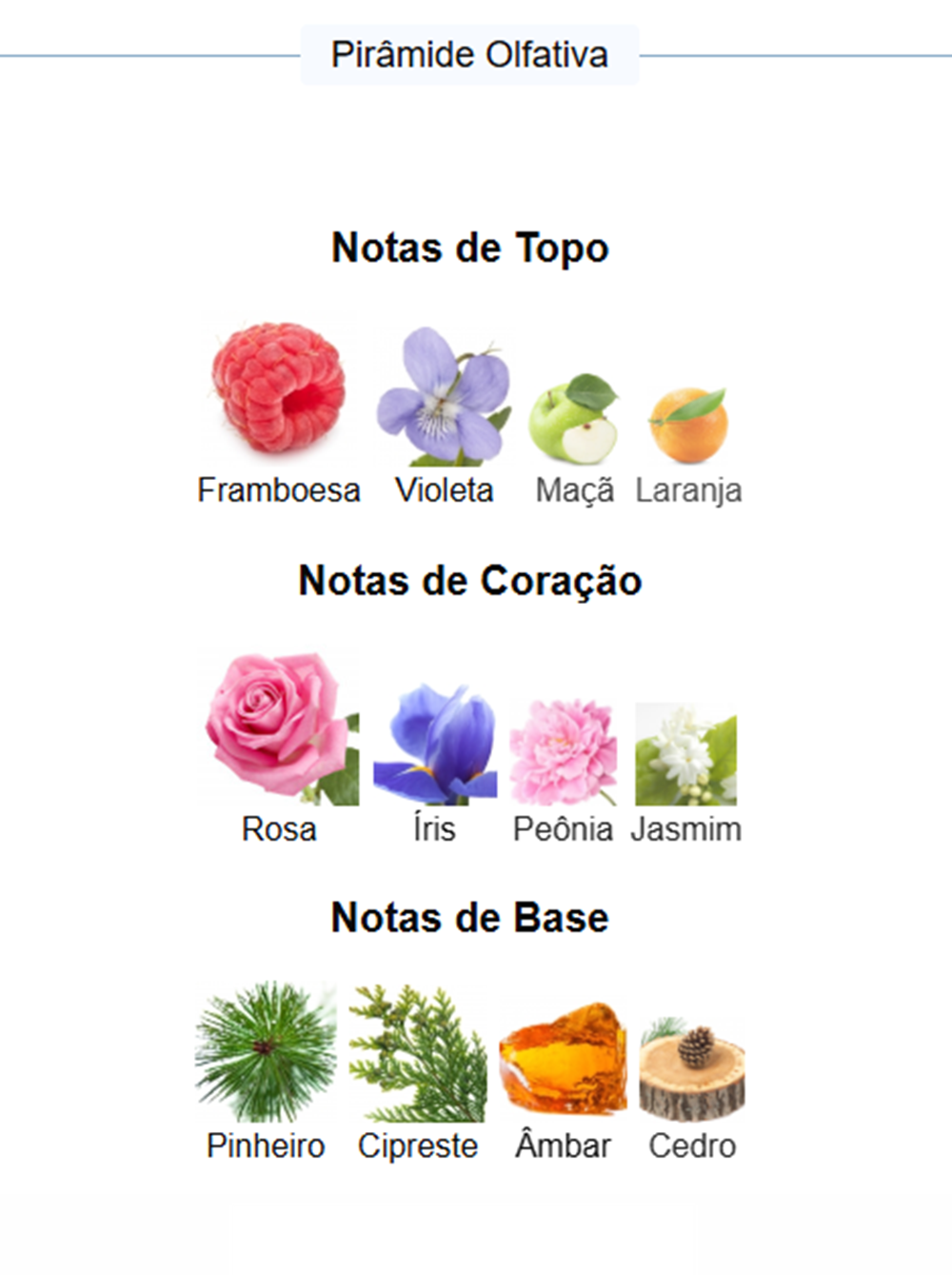 Topo: Framboesa, Maçã, Violeta, Laranja